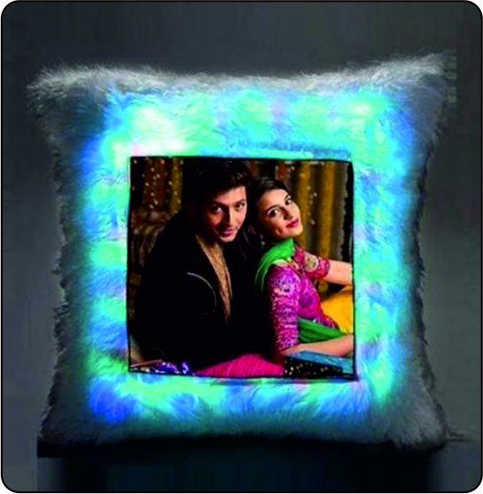 Custom photo print LED cushion. Glows with your photo. 12×12 inch soft microfibr